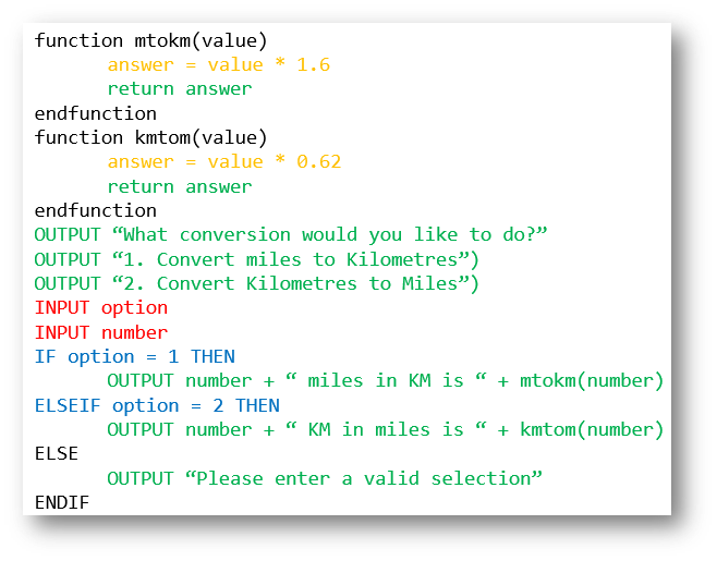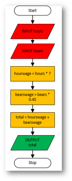 Below is a series of different programs that have pseudocode and flowcharts completed for them. Use them to try and relate your algorithm designs to your code.